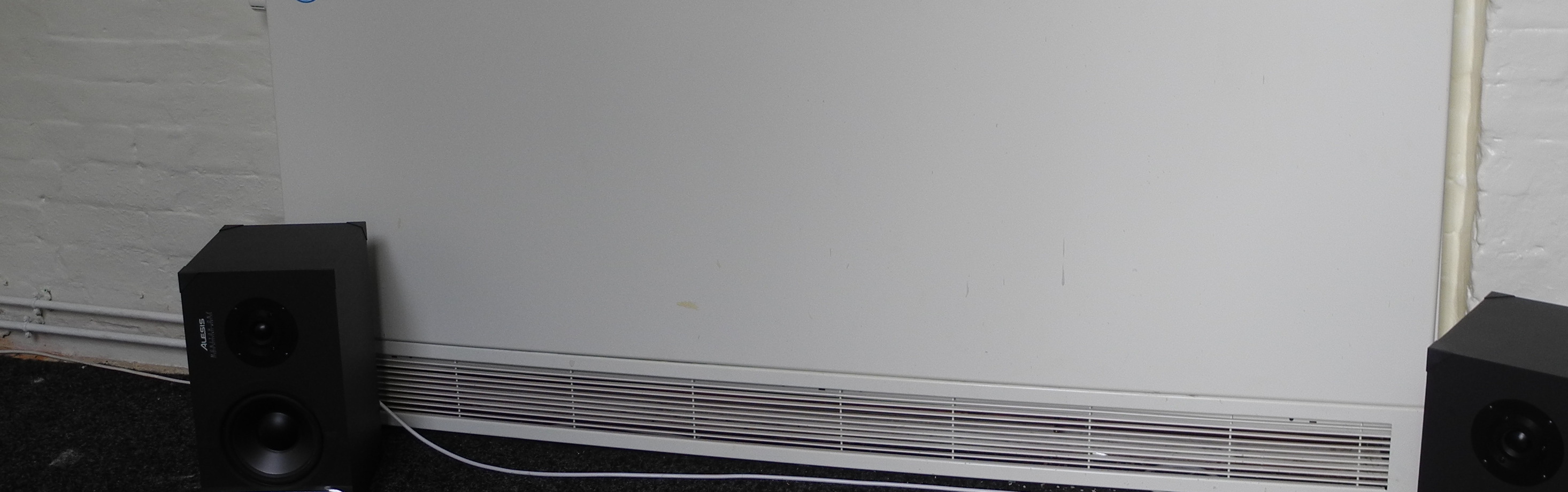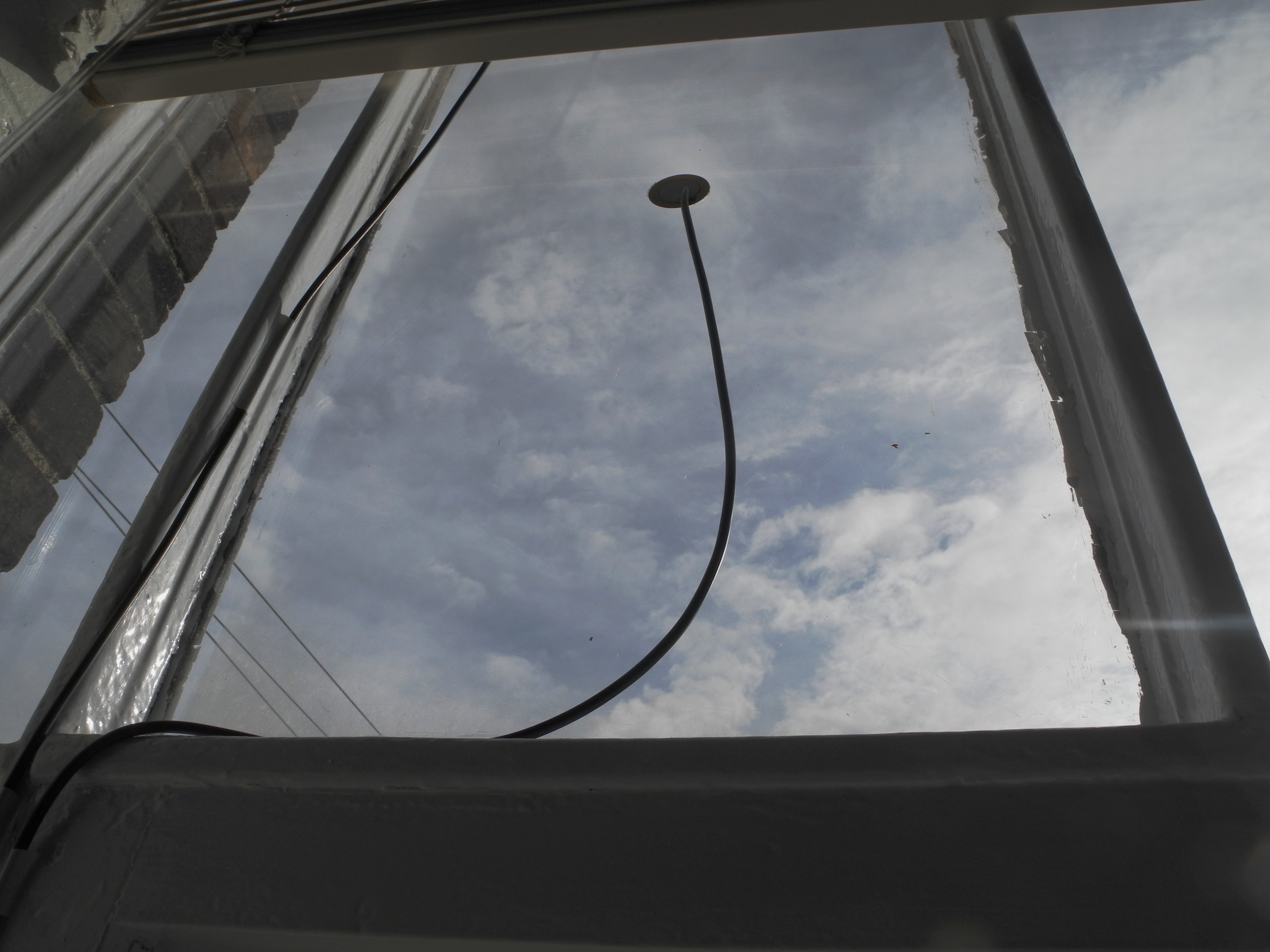 with contact microphones placed on windows and window frames, vibrations of the building and sounds from the inside and outside are picked up and played in a separate adjacent room. Because of the proximity between the two rooms, the effect is a slight change in the coloration of the ambient sound, a minor disturbance of the expected sonic picture.